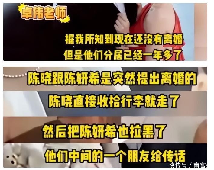 手握多个大瓜的娱记卓伟,早在去年的时候就有所透露了,声称陈晓和陈妍希是突然提出离婚的,连一点点征兆都没有,甚至不惜当场拿走行李想要原地走人。